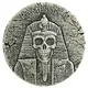 A fleshless portrait of Pharaoh Ramesses II of Egypt. Designed to appear as if freshly snatched from a royal resting place, the field is adorned with astonishingly realistic cracks, chisel marks and faded hieroglyphs, as well as the Pharaoh’s name, which is the only text on the obverse. |