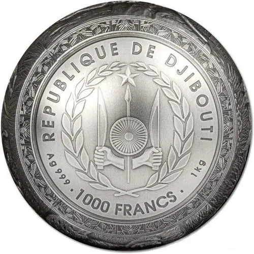 REPUBLIQUE DE DJIBOUTI Ag 999 1000 FRANCS 1 kg (Translation: Republic of Djibouti) |