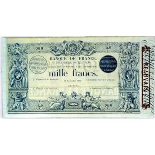 | Obverse lettering | BANQUE DE FRANCE mille francs. BARRE FECIT |