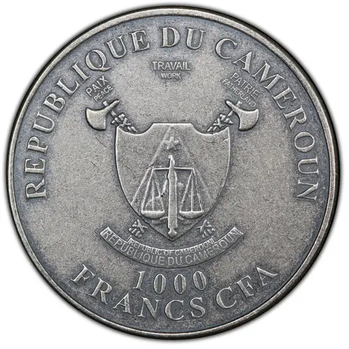 | Obverse lettering | REPUBLIQUE DU CAMEROUN PAIX TRAVAIL PATRIE PEACE WORK FATHERLAND REPUBLIC OF CAMEROON REPUBLIQUE DU CAMEROUN 1000 FRANCS CFA |