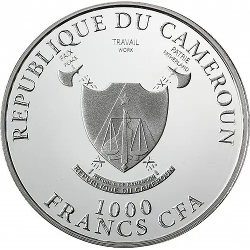 | Leyenda del anverso | REPUBLIQUE DU CAMEROUN PAIX TRAVAIL PATRIE PEACE WORK FATHERLAND REPUBLIC OF CAMEROON 1000 FRANCS CFA |
