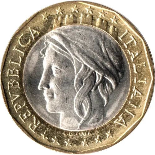 | Reverse lettering | 1 9 9 7 R PERNAZZA L.1000 (Translation: 1000 Lire 1997 Pernazza) |