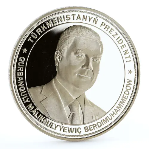 | Obverse lettering | TÜRKMENISTANYÑ PREZIDENTI * GURBANGULY MÄLIKGULYÝEWIÇ BERDIMUHAMMEDOW * (Translation: Turkmenistan President Gurbanguly Mälikgulyýewiç Berdimuhamedow) |