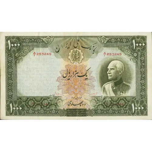 | توضیحات روی اسکناس | Green on multicolor underprint. Portrait Shah Reza in three-quarter face towards left without cap at right. |