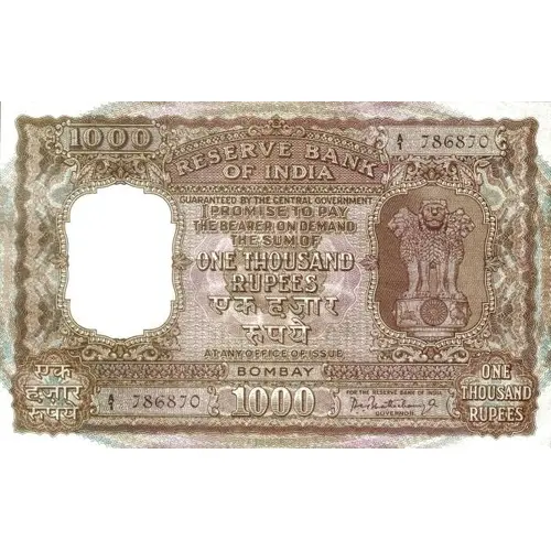 1000 Reserve Bank of India Guaranteed by the central Government I promise to pay the bearer on demand the sum of one thousand rupees At any office of issue 1000 One Thousand Rupees |