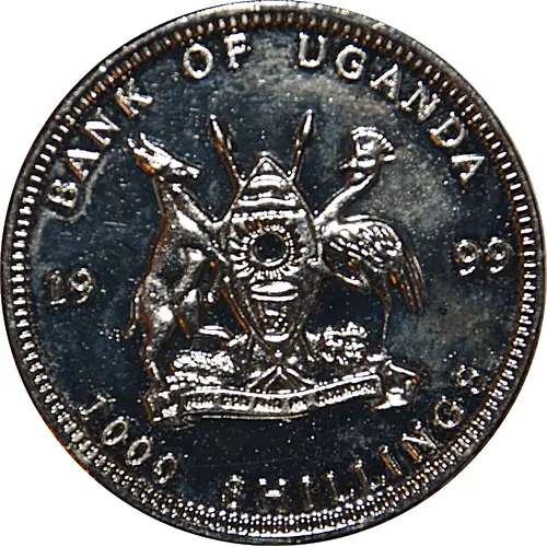 | Obverse lettering | BANK OF UGANDA 1999 FOR GOD AND MY COUNTRY 1000 SHILLINGS |