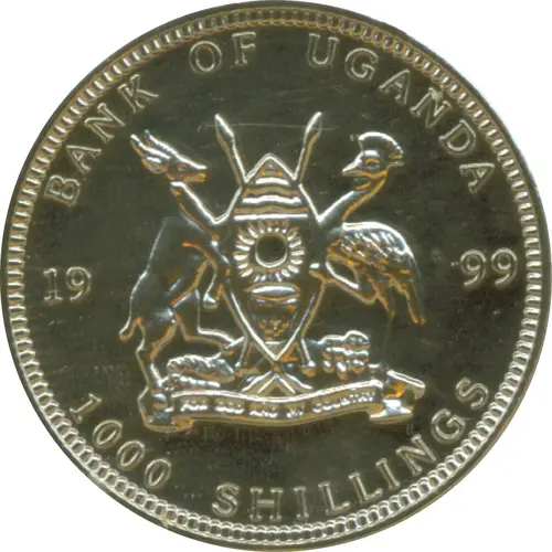 | Obverse lettering | BANK OF UGANDA 19 99 FOR GOD AND MY COUNTRY 1000 SHILLINGS |