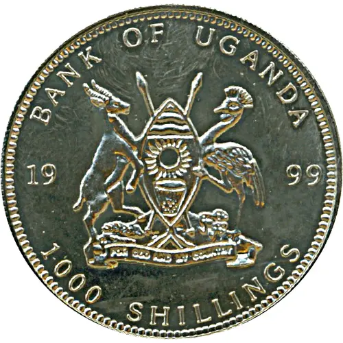 | Obverse lettering | BANK OF UGANDA 19 99 FOR GOD AND MY COUNTRY 1000 SHILLINGS |