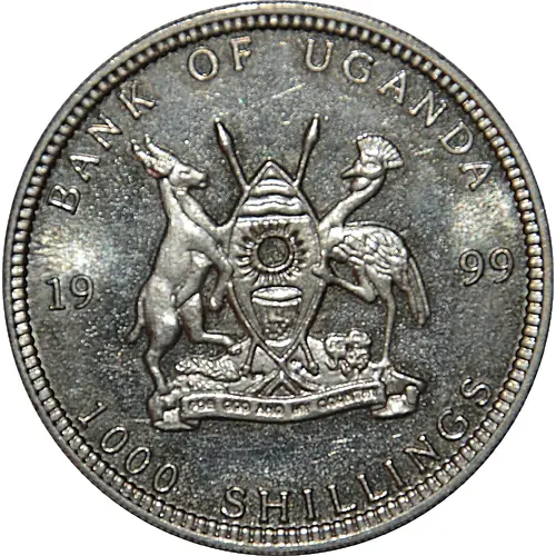 | Obverse lettering | BANK OF UGANDA 1999 FOR GOD AND MY COUNTRY 1000 SHILLINGS |