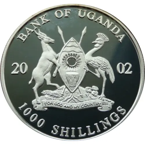| Obverse lettering | BANK OF UGANDA 20 02 1000 SHILLINGS FOR GOD AND MY COUNTRY |