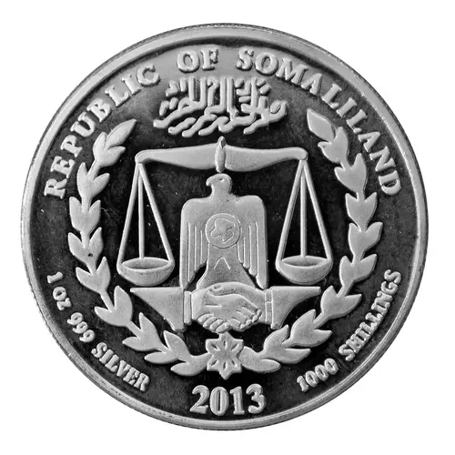 | Obverse lettering | REPUBLIC OF SOMALILAND 1 OZ 999 SILVER 2013 1000 SHILLINGS |