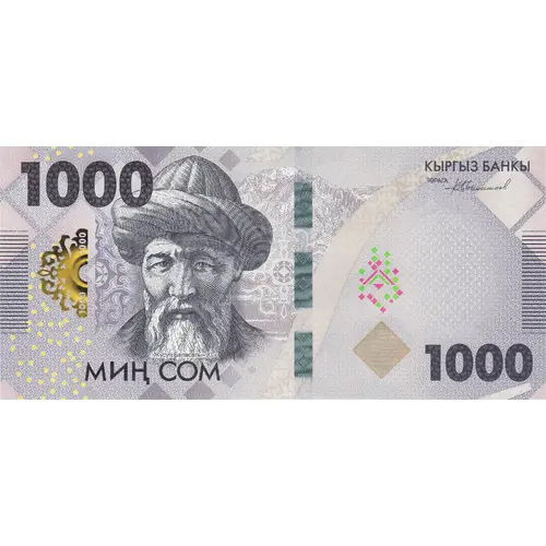 | Obverse lettering | КЫРГЫЗ БАНКЫ 1000 1000 МИҢ СОМ (Translation: Kyrgyz Bank, One Thousand Som) |