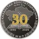 | Описание реверса | In the center is the number `30` above an open book, representing the Constitution of the country with the years 1995 and 2025, behind it is a map of Kazakhstan. In the upper half of the circle is the inscription ҚАЗАҚСТАН КОНСТИТУЦИЯСЫНА, nder the inscription the type of metal, its fineness and the weight of the coin are indicated. In the lower half of the circle are elements of the national ornament |