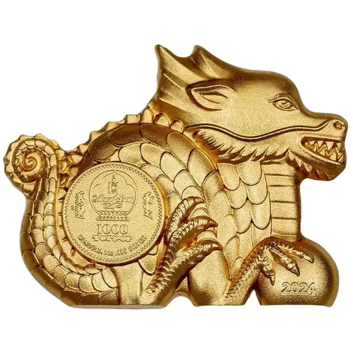 Artistry: The design of the "Great Silver Dragon" coin is a testament to contemporary numismatic artistry, likely emerging from a specialized minting facility known for intricate relief work. While specific engraver details are often proprietary for modern issues, the stylistic school is characterized by dynamic, high-relief sculpture, emphasizing depth and detail. The obverse typically features the national emblem of Mongolia and the denomination, while the reverse presents the eponymous Great Silver Dragon. This central motif is rendered with exceptional detail, likely depicting a powerful, serpentine creature with intricate scales, sharp claws, and a commanding presence. The gold plating over the .999 silver substrate is a deliberate artistic choice, designed to accentuate specific features of the dragon, such as its eyes, horns, or scales, creating a striking contrast and enhancing its mythological grandeur.
