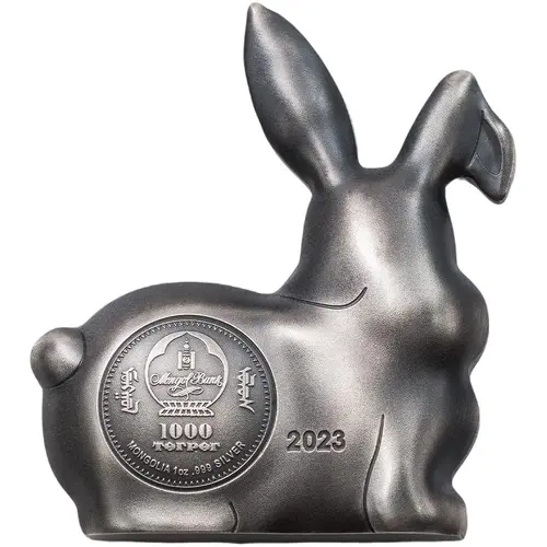 | Chữ khắc mặt trước | Mongol Bank ᠮᠤᠩᠭᠤᠯ ᠤᠯᠤᠰ 1000 TӨГРӨГ MONGOLIA 1oz .999 SILVER 2023 (Translation: Monggol Ulus 1000 Tögrög) |