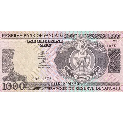 | 表面の銘文 | RESERVE BANK OF VANUATU 1000 VT ONE THOUSAND VATU MILLE VATU BANQUE DE RESERVE DE VANUATU |