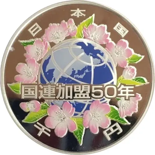 | Obverse lettering | 日 本 国 国連加盟50年 千 円 (Translation: State of Japan 50 years a member of the U.N. 1000 yen) |