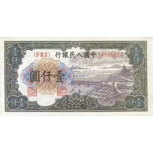 | Надписи лицевой стороны | 行銀民人國中 圓仟壹 年九四九一 (Translation: People`s Bank of China 1000 Yuan Year 1949) |