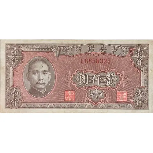 | Obverse lettering | 行銀央中 圓仟壹 (Translation: Central Bank of China 1000 Yuan) |