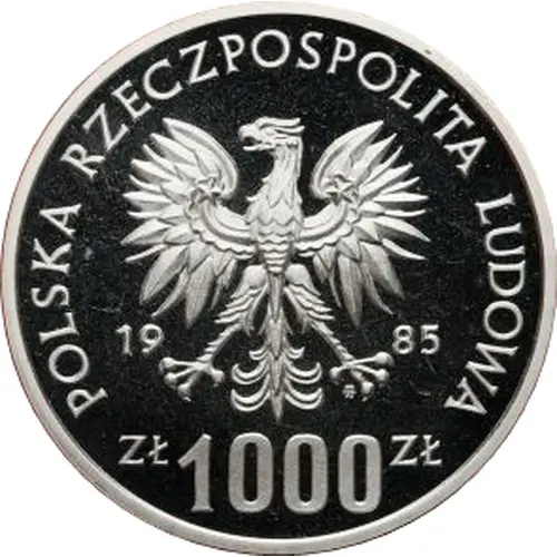 | Obverse lettering | POLSKA RZECZPOSPOLITA LUDOWA 19 85 mw ZŁ 1000 ZŁ |