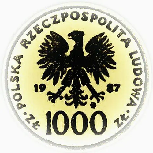 | Obverse lettering | · POLSKA RZECZPOSPOLITA LUDOWA · 19 87 mw ZŁ 1000 ZŁ |