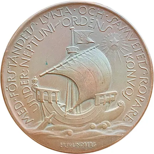 | Obverse lettering | MED . FÖRSTÅNDETS . LYKTA . OCH . SAMVETETS . ROPARE UNDER . NEPTUNI-ORDENS KONVOJ ERIK.LINDBERG |