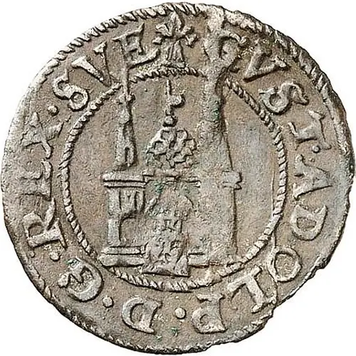 GVST · ADOLP · D · G · REX · SVE (Translation: Gustav Adolf Dei Gratia Rex Sveciae Gustav Adolf, with God`s grace, King of Sweden) |