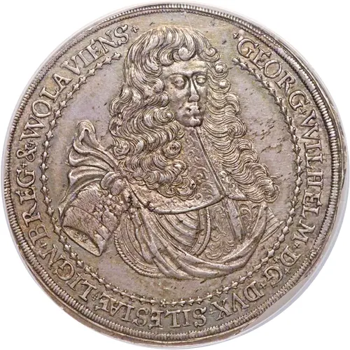 | Legenda awersu | ·GEORG·WILHELM·D:G·DVX·SILESIAE·LIGN·BREG·&·WOLAVIENS· |