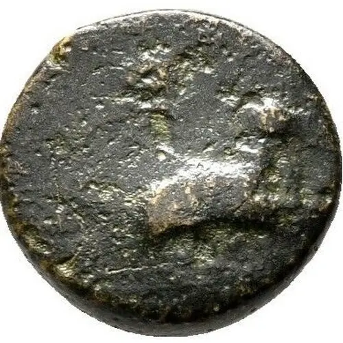 | توضیحات روی سکه | Horseman riding right, wearing petatos |