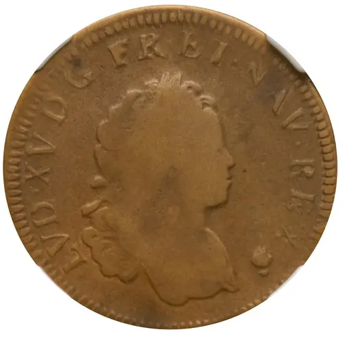 | Reverse lettering | XII DENIERS COLONIES 1717 Q |
