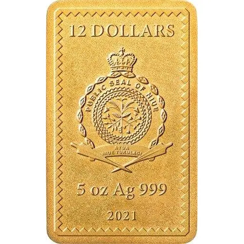 | Légende de l’avers | 12 DOLLARS PUBLIC SEAL OF NIUE ATUA NIUE TUKULAGI 5 oz Ag 999 2021 |