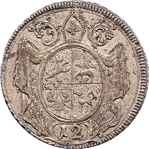| Obverse description | Mitre above mantled, oval arms, value below. |