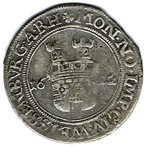 | Obverse description | City arms divide date. |