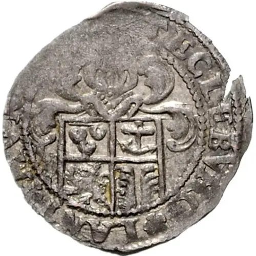 Obverse description 4-fold arms, central shield of Rheda arms.