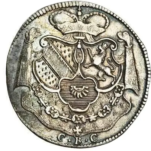 | Reverse description | 5-line inscription with value and date within cartouche. |