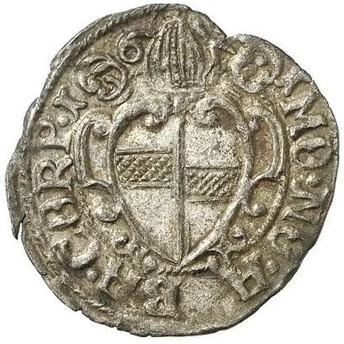 | Obverse description | Heart-shaped shield of 4-fold arms in baroque frame, superimposed on 2 crossed croziers, mitre above divides date. |