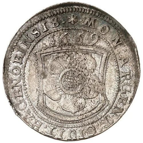MON. ARGENT. CIUIT. HAGENOEINSIS. 1669 (Translation: Silver coinage of the city of Haguenau.) |