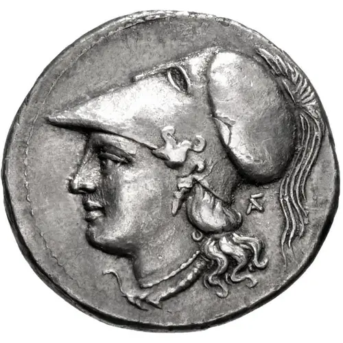 | Obverse description | Helmeted head of Athena left; AΓ monogram behind neck. |
