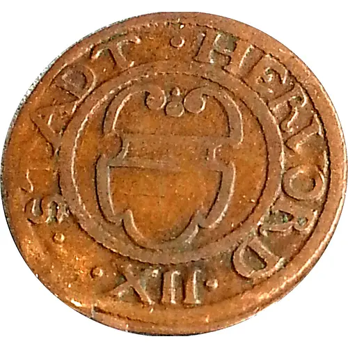| توضیحات روی سکه | Town symbol of Herford encircled legend surrounding between 2 circles |