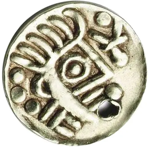 | Obverse description | Stylized head facing right. `ұ` symbol and pellet before. |