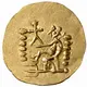 | Описание реверса | Crude figure of Athena seated to left, holding a small standing male figure on her right hand and a transverse spear over her left shoulder; to left and right, vertical column of oblong pellets; below, serving as an exergual line, trident to left. |