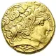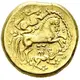 | Aversbeschreibung | Celticized laureate head of Apollo to right, the hair devolved into long curls with a strand falling loose before the forehead. |