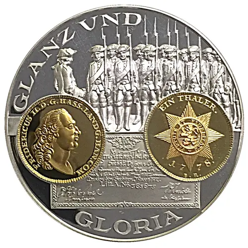 | Описание аверса | Military scene and gold inserts of Sterntaler coin (1778, KM# 516). |