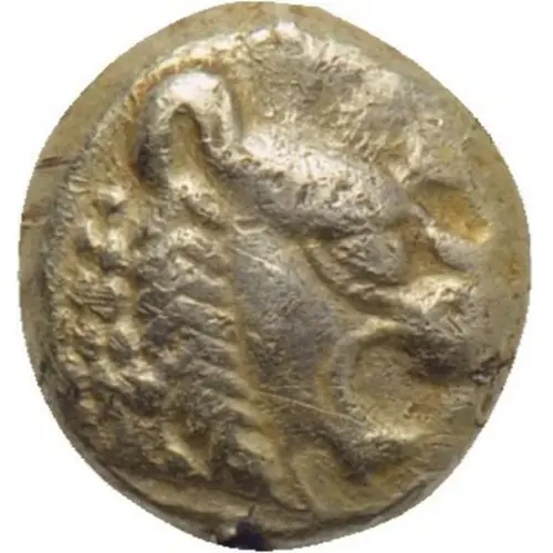 | Opis awersu | Head of lion with open jaws and globule on forehead, right. |