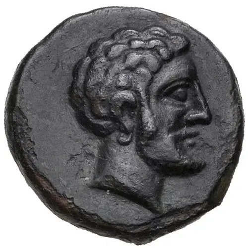 | Descripción del anverso | Bearded head (of Herakles?) facing right |