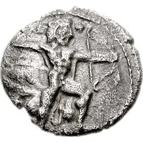 | Descripción del anverso | Herakles advancing right, wearing lion skin, holding club and bow |
