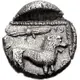 | Descripción del reverso | Lion standing right, winged sun above and all in dotted square within incuse square |
