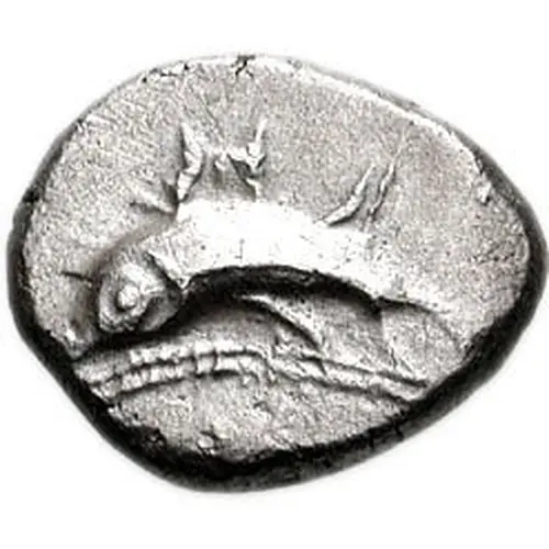 | توضیحات روی سکه | Dolphin left. Lycian letters above, two lines below |