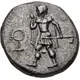 | Obverse description | Warrior advancing left, raising left hand, holding spear in right; ankh-like symbol to left. |