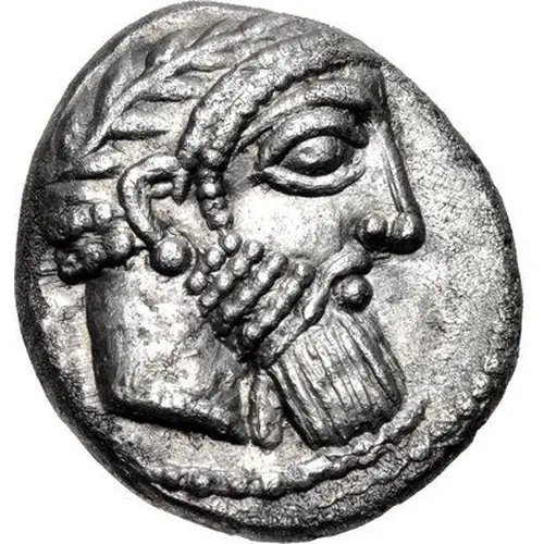 | توضیحات پشت سکه | Galley right; AM (in Phoenician) above, waves below; all in dotted square within incuse square. |